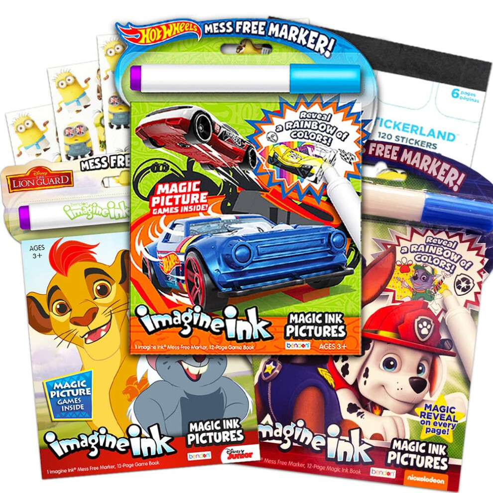 Imagine Ink Bundle Includes 3 No Mess Coloring Books ~ Paw Patrol Race Cars Minions with Stickers