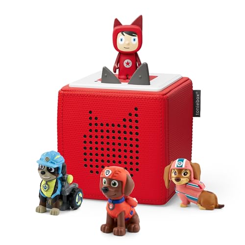 tonies Toniebox Paw Patrol Bundle Incl. 1 Creative and 3 Characters: Rex, Zuma and Liberty, Kids Gifts, Screen-Free Audiobooks and Kids Music Player, Early Development & Activity Toys, Red
