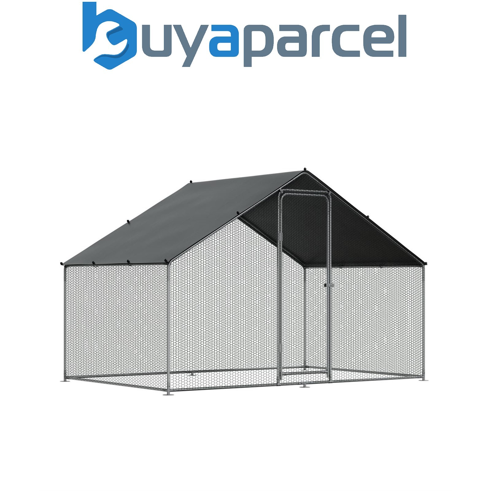 PawHut Walk-In Galvanised Chicken Run with Cover 2.8x3.8x2m - Fits 6-12 Chickens D51-321V01