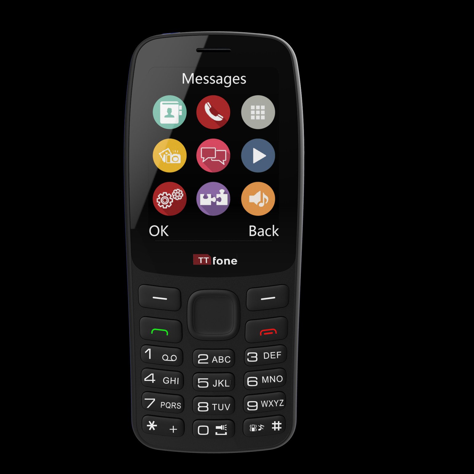 TTfone TT150 Unlocked Basic Mobile Phone UK Sim Free with Bluetooth, Long Battery Life, Dual Sim with camera and games, easy to use, Pay As You Go (O2, with £0 Credit, Black)