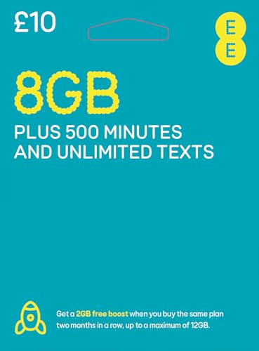 EE Pay As You Go SIM Card UK PREPAID PAYG £10 Bundle 8GB + (12GB FREE DATA every month for 6 months with regular top ups (Promotion request deadline of 31.01.2026)