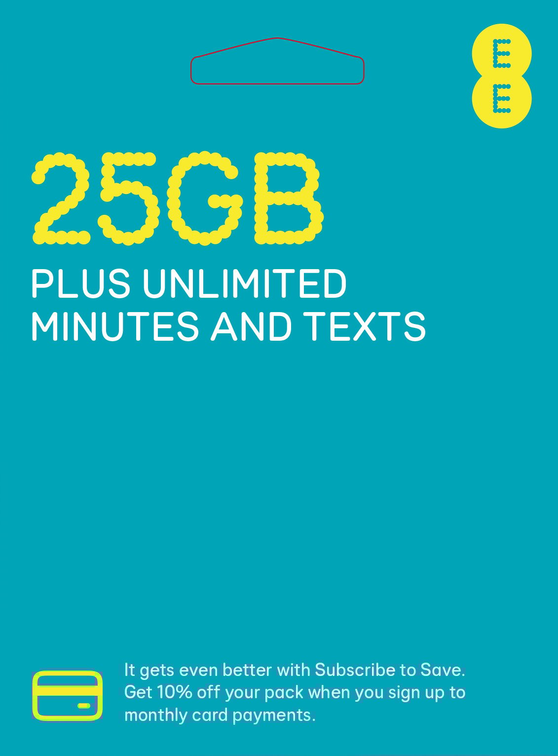EE Pay as You Go SIM Card UK PREPAID PAYG £15 Bundle 25GB + (50GB FREE DATA Ever