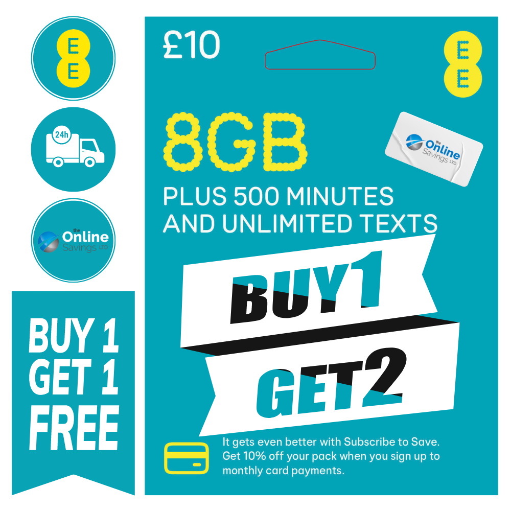 EE Pay As You Go SIM Card UK PREPAID PAYG £10 £10 - 8GB + 12GB FREE