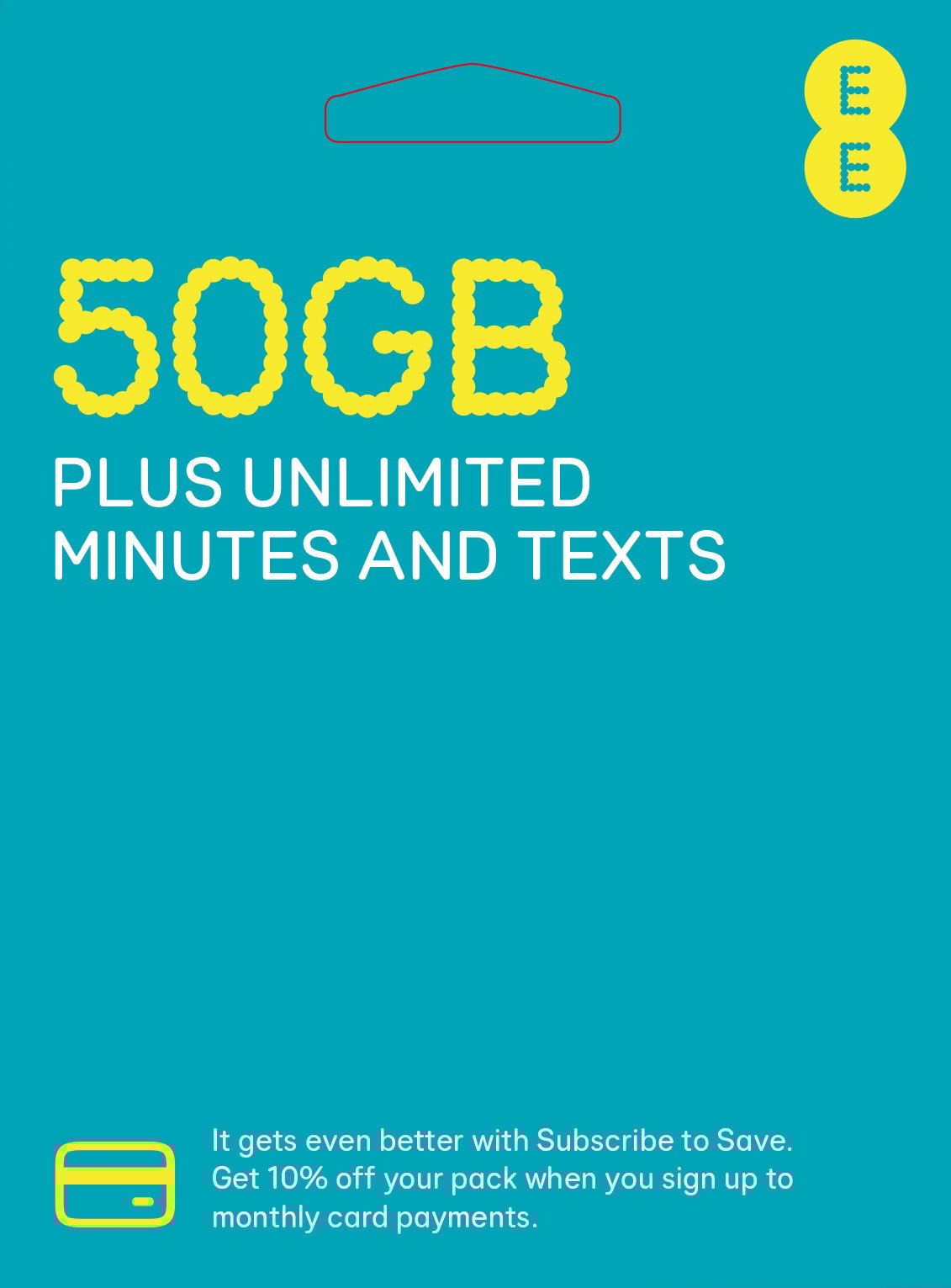 EE Pay As You Go SIM Card UK PREPAID PAYG £20 - 50GB + 100GB FREE