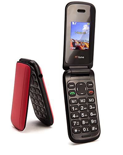 TTfone Lunar TT750 Big Button Simple Easy Clamshell Flip Mobile Phone Pay As You Go (Vodafone, Red)