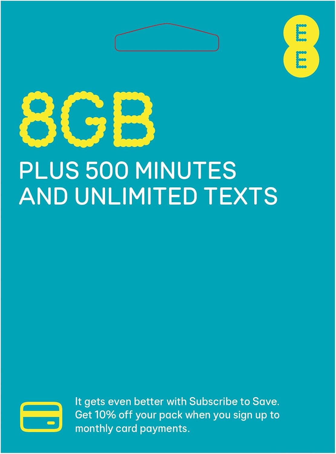 EE Pay as You Go SIM Card UK PREPAID PAYG £10 Bundle - 8GB + Unltd Texts & 500 M