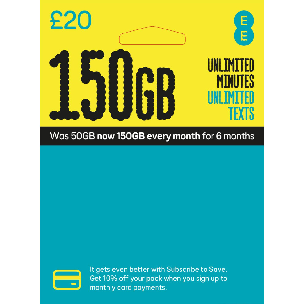 EE Pay As You Go SIM Card UK PREPAID PAYG 10 Bundle 8GB + (12GB FREE DATA every month for 6 months with regular top ups (Promotion request deadline