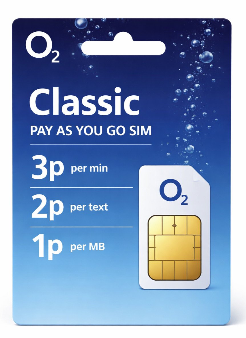 Official O2 Classic Pay As You Go SIM Card – UK - Credit rolls over - 3 in 1 SIM
