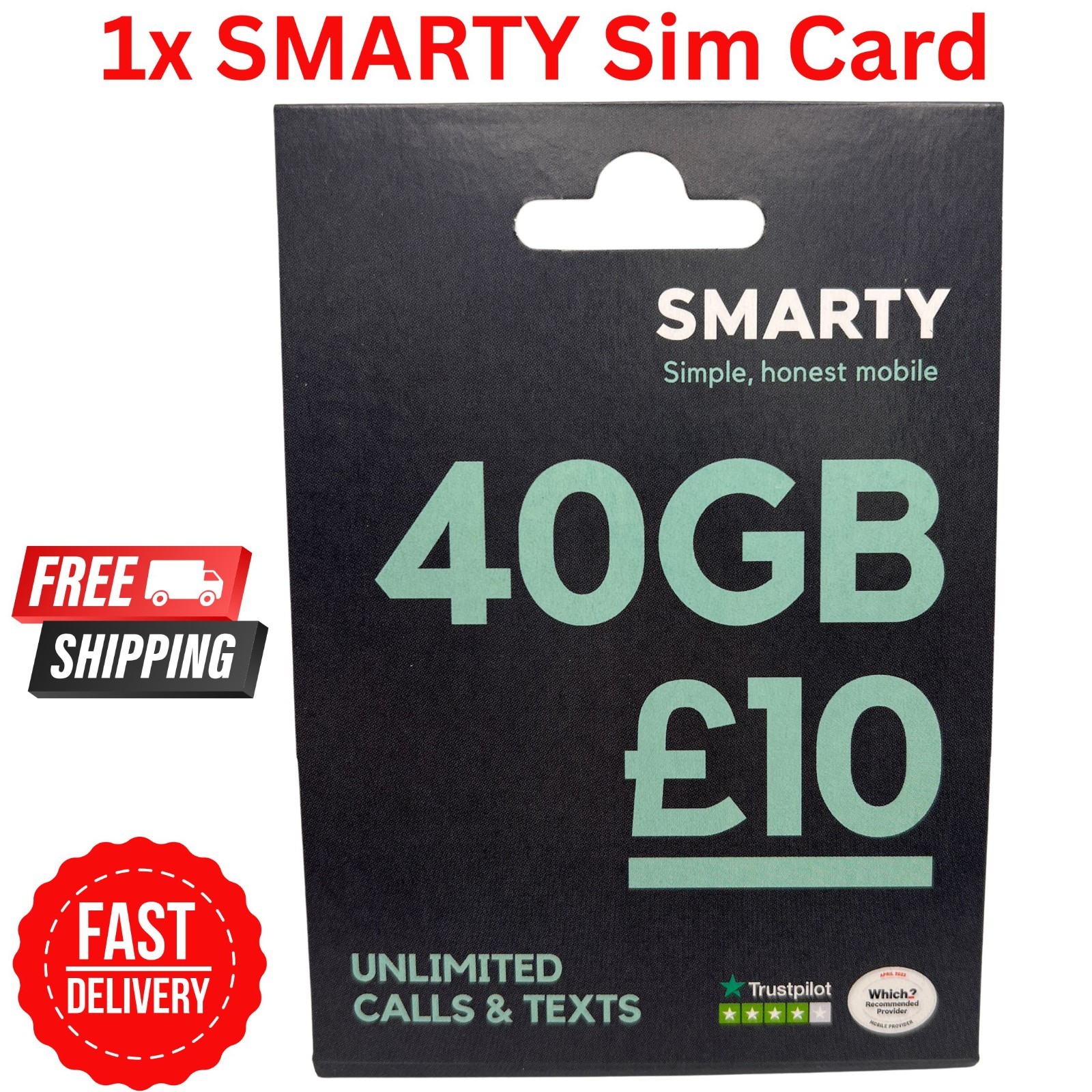 SMARTY 100GB 30 Day Pay As You Go SIM Card