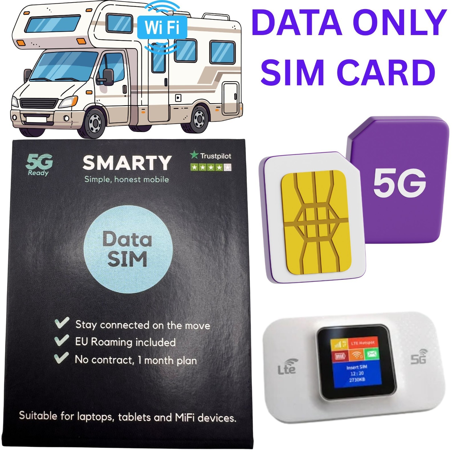 1 x SMARTY UK WiFi Router & phones DATA ONLY Sim Card Pay As You Go 5G 4G MiFi