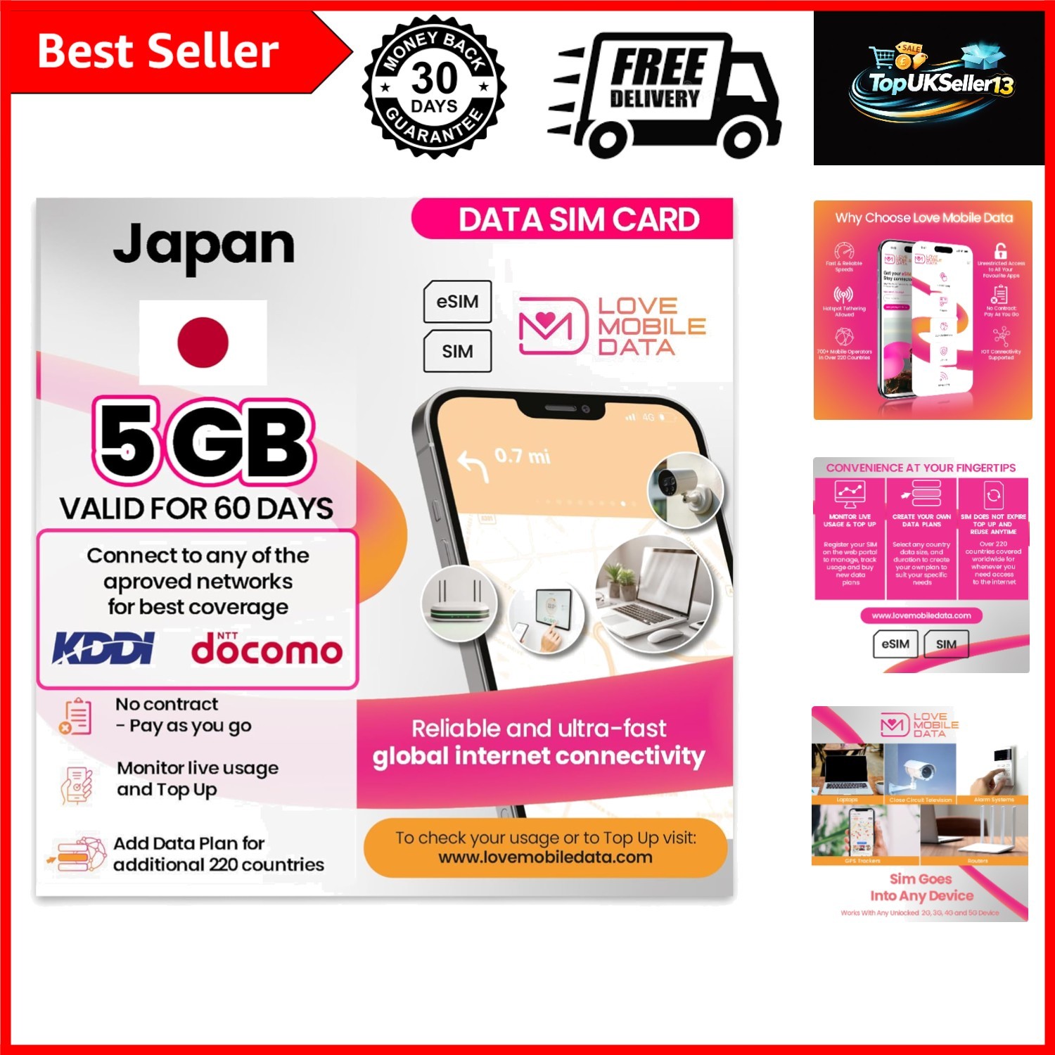 Love Mobile Data Only Sim Card - International Multi-Network 4G/5G Prepaid Pay As You Go Data Sim for Mobile Phones, WiFi Routers, United Kingdom (O2