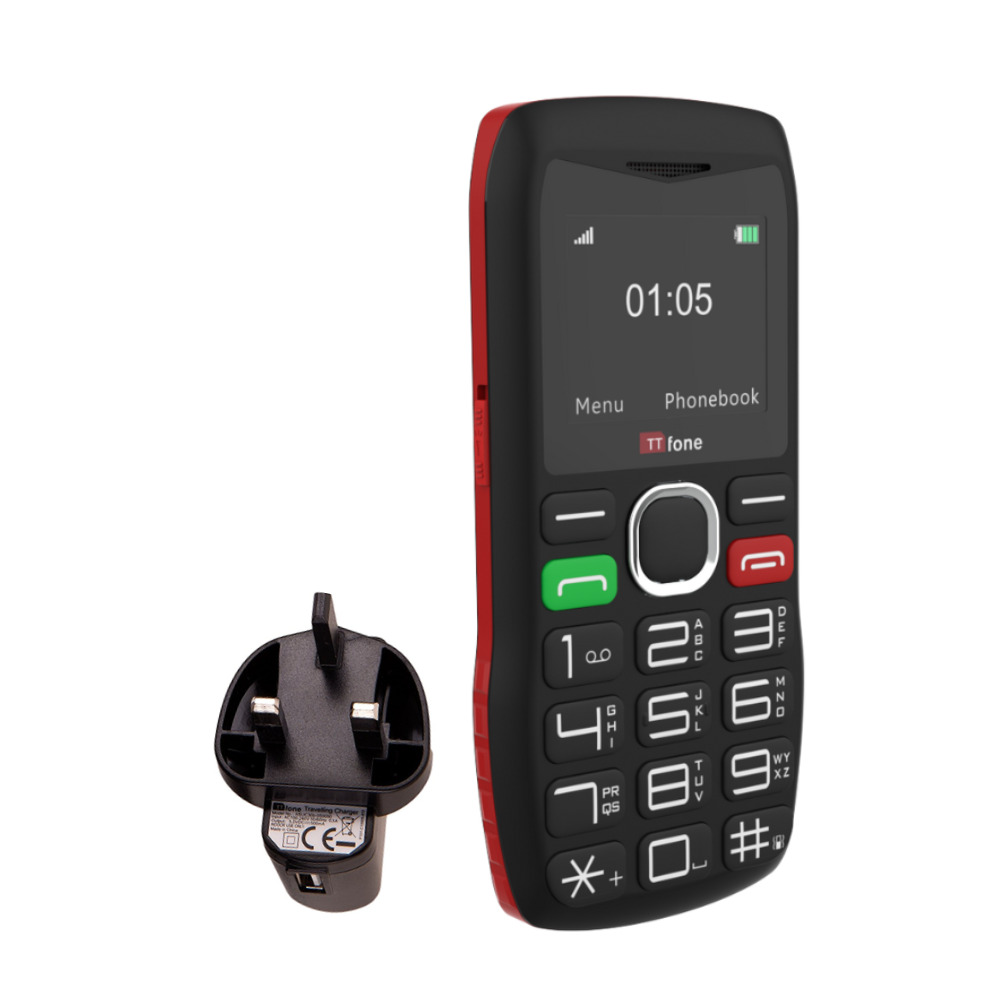 TTfone TT190 Simple Mobile Phone with Mains plug & PAYG O2 SIM card Network