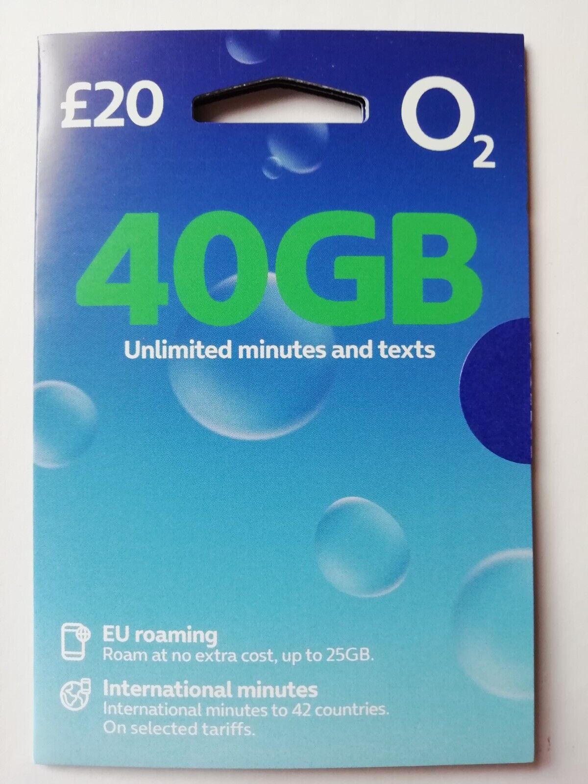 O2 PAYG Sim Card International Big Bundle 40GB for £20 NB *ZERO CREDIT INCLUDED