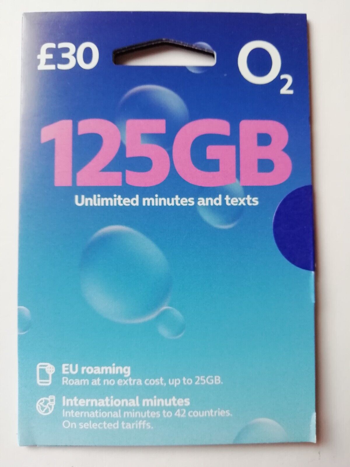 O2 PAYG Sim Card International Big Bundle 125GB for £30 NB *ZERO CREDIT INCLUDED