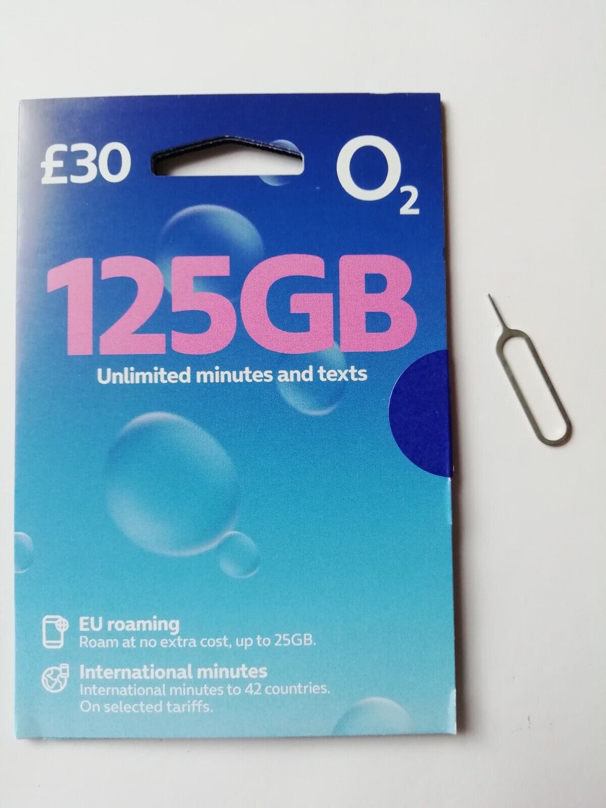 O2 PAYG Sim Card International 125GB for £30 + SIM EJECTOR PIN *NB* ZERO CREDIT