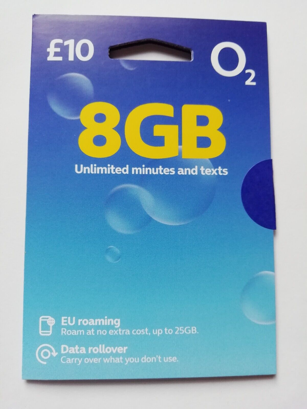 O2 PAYG Sim Card Unltd std UK mins & txts 8GB for £10 NB *ZERO CREDIT INCLUDED*