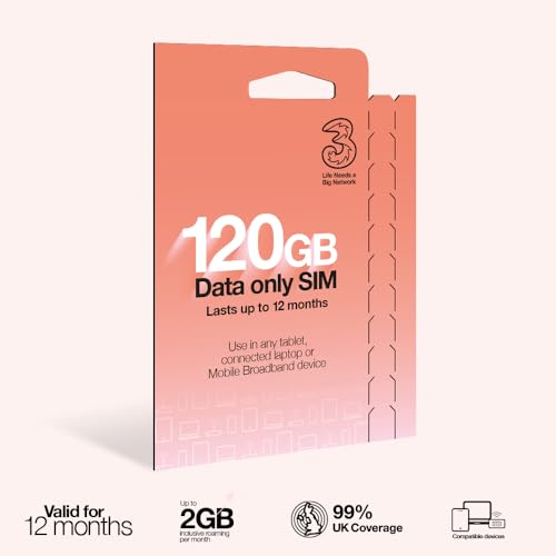 Three PAYG Mobile Broadband SIM, Pre-loaded with 120GB of Data