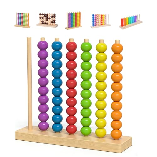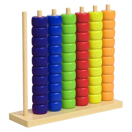 HOUKUNKA Wooden Color Pile Up Challenge Game: Portable Fast Rainbow Ring Stack Puzzle Competitive Tabletop Brain Teaser with Racks & Cards, Family Fun Game Night Learning Activity (1PC)