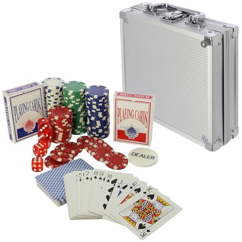 Casino Poker Set Texas Hold'em Game 11.5g Profesional Chips Deck Cards & Dice in Aluminium Case 100/300/500pc Complete (100pc Set)