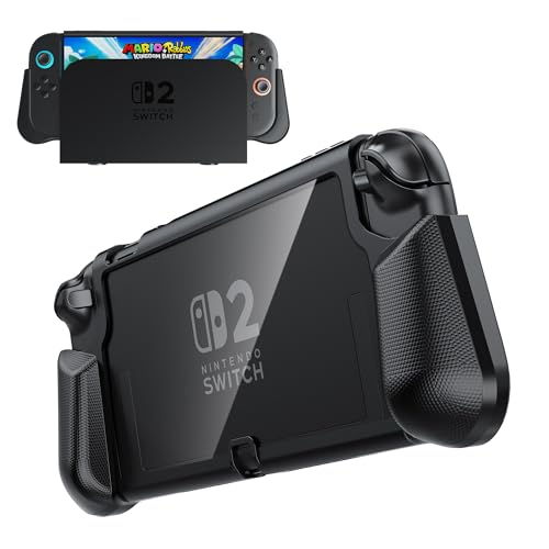 PZOZ Grip Case for Nintendo Switch 2 2025,Dockable Protective Case with Game Cards Slot TPU&PC Hard Cover Compatible with Switch 2 Grip (Black)