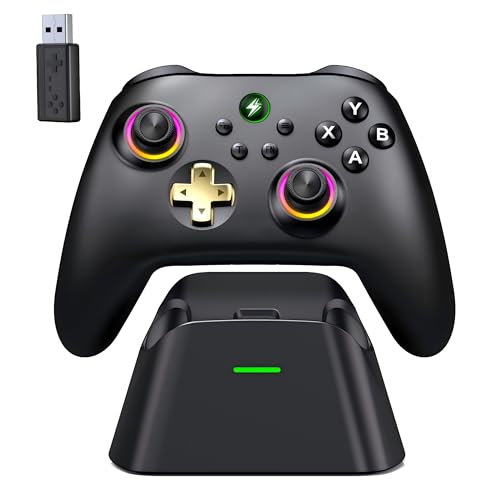 ECHTPower PC Gaming Controller–Wireless for PC with Hall-Effect Joysticks, 1000Hz Polling Rate, No Drift, Turbo & Vibration, Compatible with Windows/Switch/iOS/Android/Steam –Place & Charge Dock