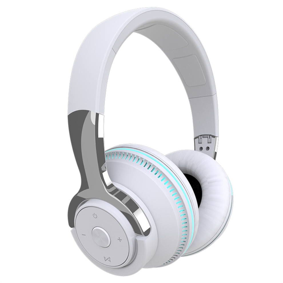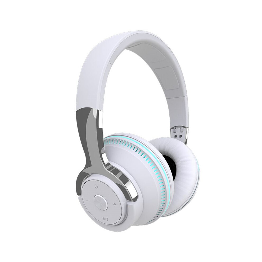 Wireless Bluetooth Headphones Noise Reduction Headset for Phones PC Gaming Headsets Heavy LED Light Earphones-White