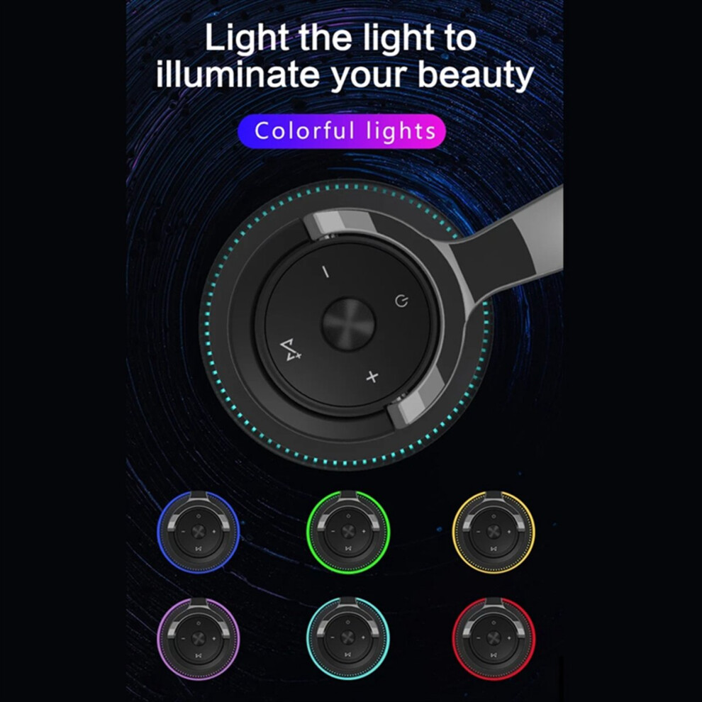 Wireless Headphones Noise Reduction Headset for Phones PC Gaming Headsets Heavy Bass LED Light Earphones-Black