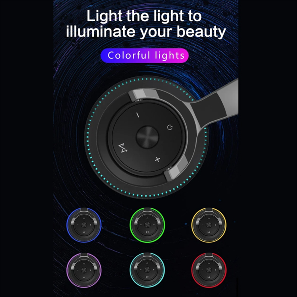 Wireless Bluetooth Headphones Noise Reduction Headset for Phones PC Gaming Headsets Heavy LED Light Earphones-Black