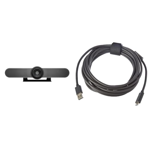 Logitech MeetUp Video Conferencing System, Ultra HD 4K/1080p/720p, 3 Microphones/Adjustable Speakers, Wide Field of View 120°, PC/Mac/Laptop/Macbook/Tablet - Black, 4K & Meetup USB Cable 5 m