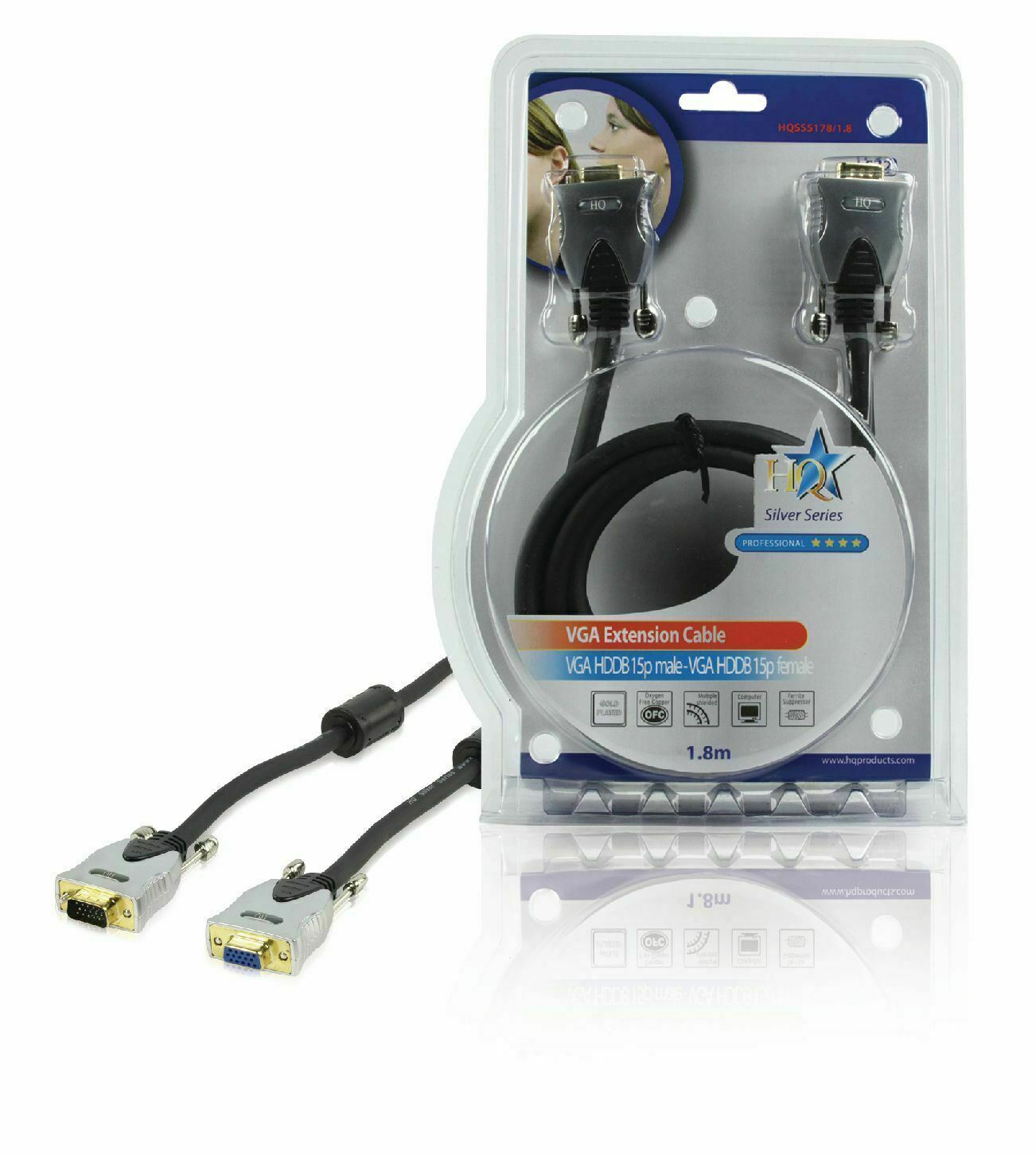 HQ VGA Extension Monitor PC LCD Cable VGA Male to Female 1.80m Dark Grey