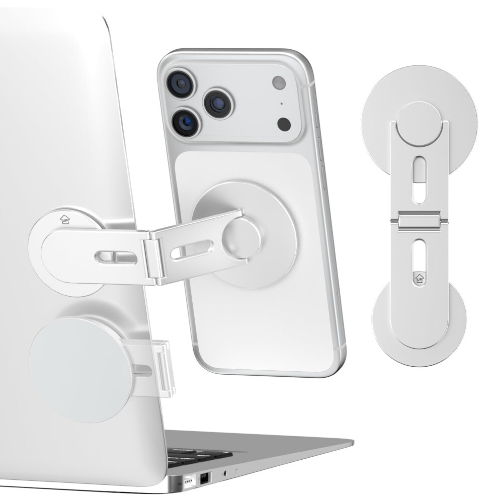 CloudValley Magnetic Laptop Phone Holder, 360? Rotating Mount Compatible with iPhone MagSafe and All Phones, MacBook, PC Monitor, Screen Stand for