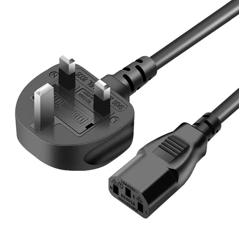 Power Lead UK 3 Pin IEC C13 Power Cable for TV, pc, monitor, plug, printers pow