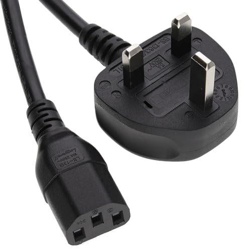 JD Brands 1 Metre UK Power Cable – IEC C13 to BS1363 Plug (3ft, Black) | PC & Monitor Mains Lead for Computers, Printers & AV Equipment