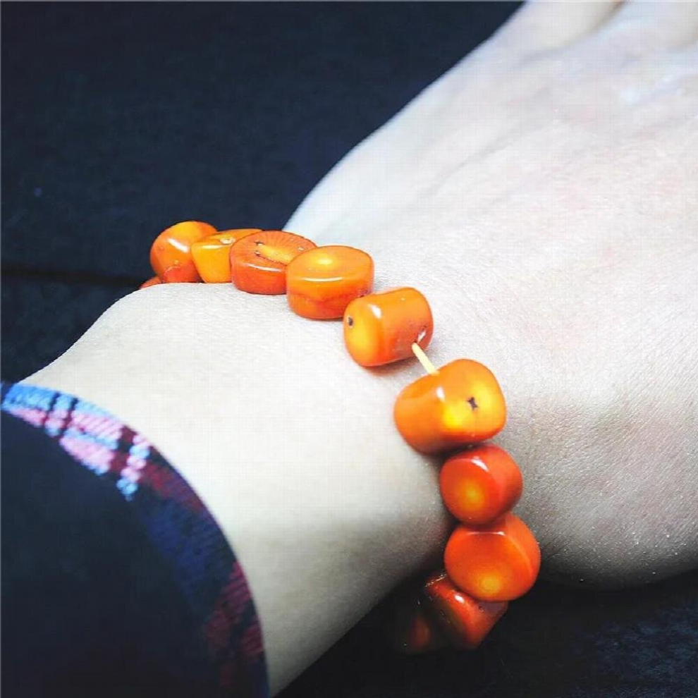 1PC Womens Bracelets Nature Orange Coral Material With Rubber Elastic Wire For Jewelry Shops Selling Or Beach Store Shipps