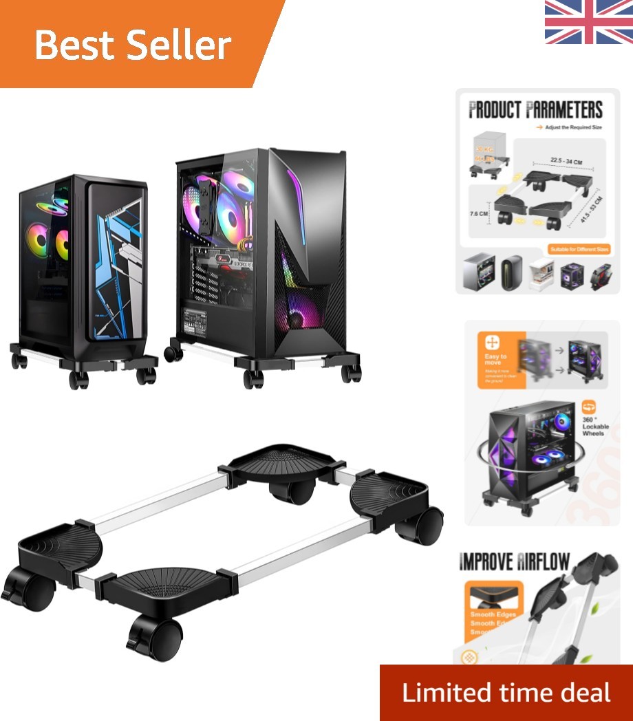 Heavy-Duty Rolling CPU Stand for PC Towers - Enhanced Ventilation & Safety