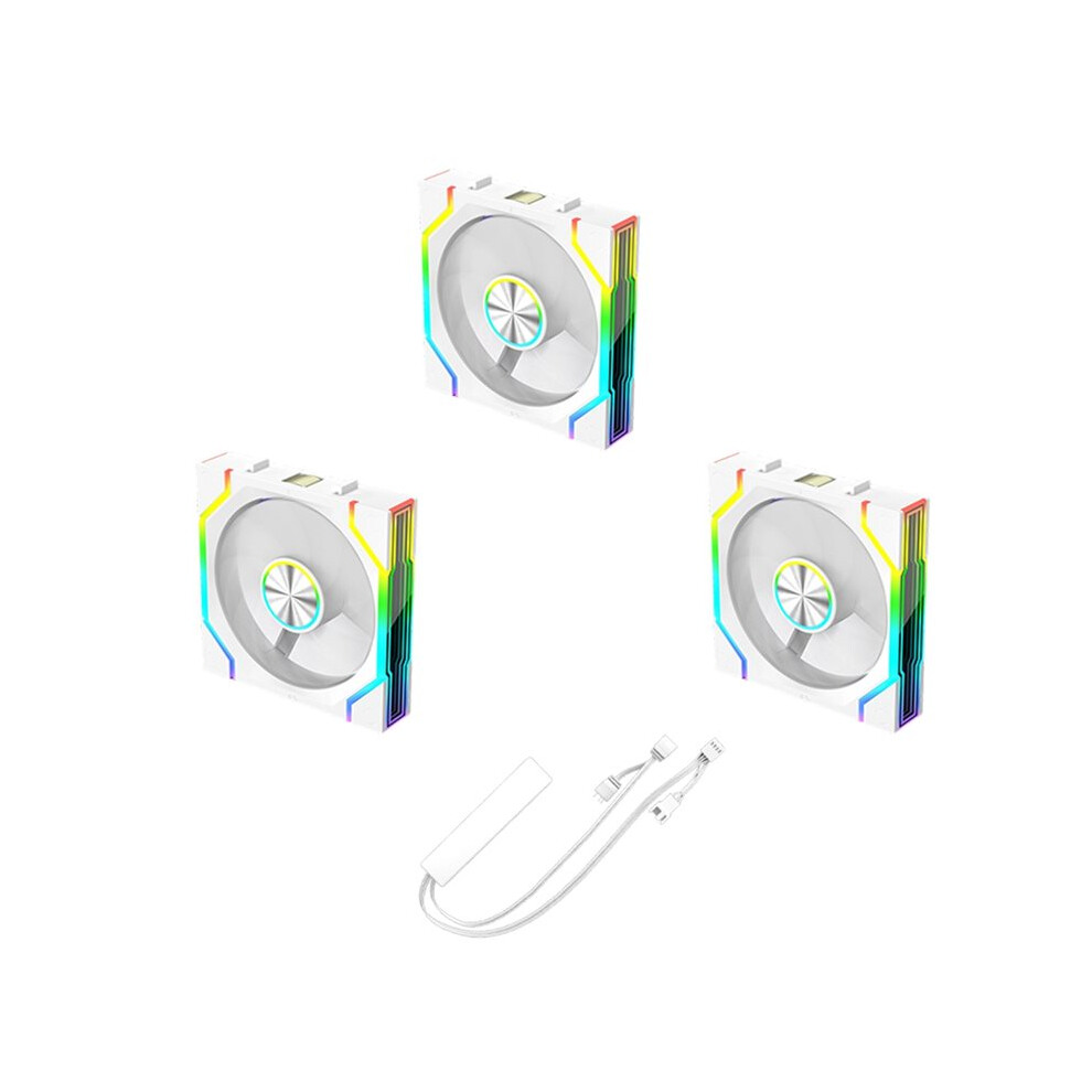 Tosuny 12CM 3-Wire Chassis Silent Fan, 15-Light Mute LED Streamer Colorful Computer Cooler Fan, with Water Pressure Bearings, for Desktop PC Computer (15 lights white)