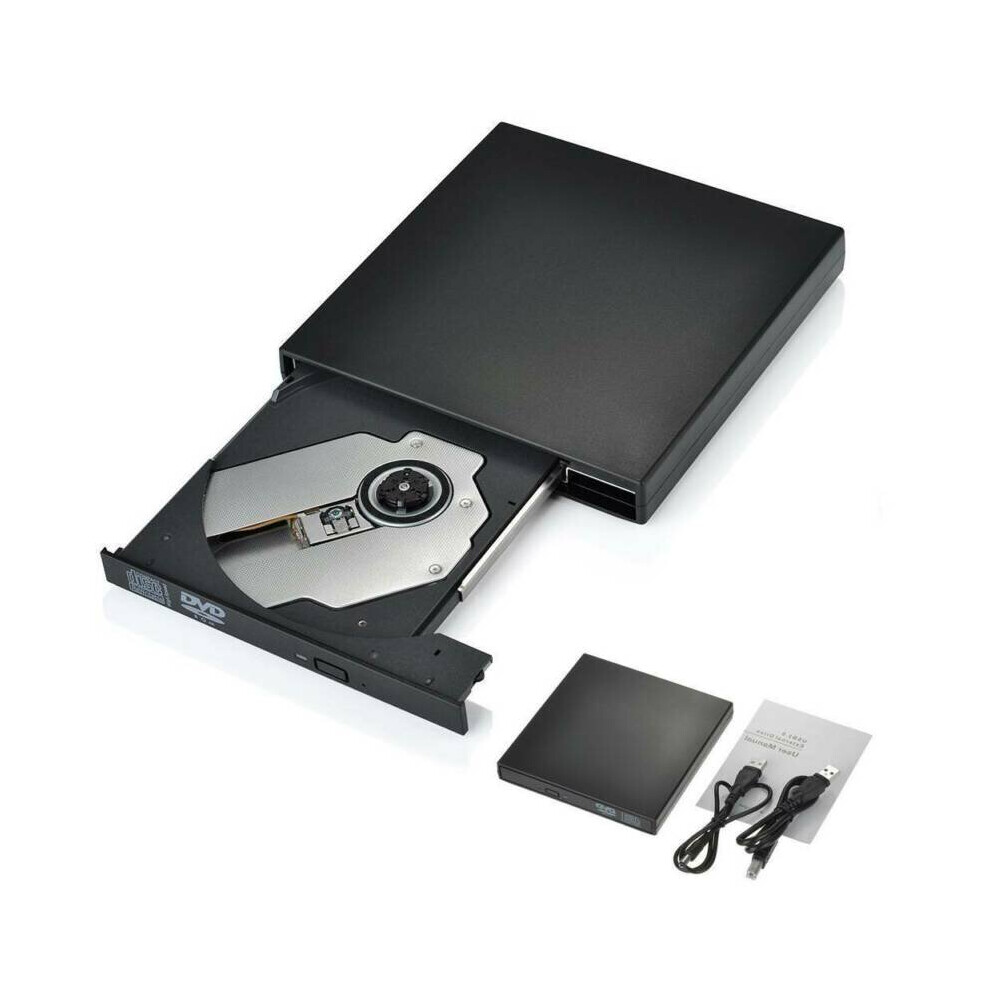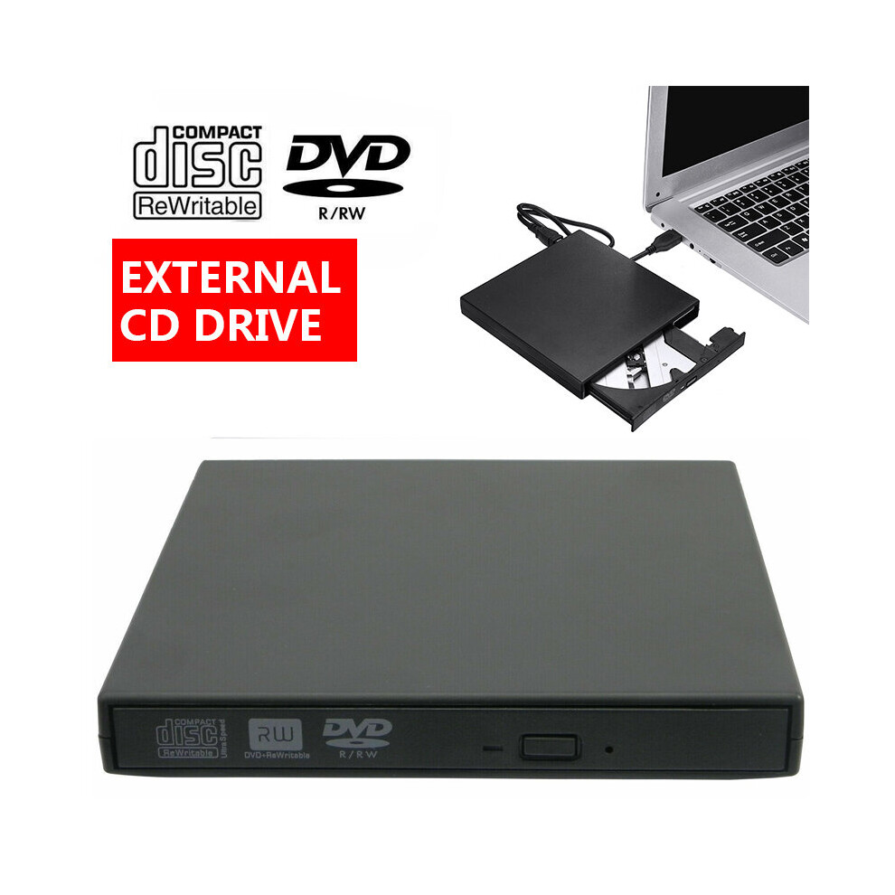 (Black) USB 2.0 External DVD CD Disc Burner Drive Reader For PC Laptop Windows Mac