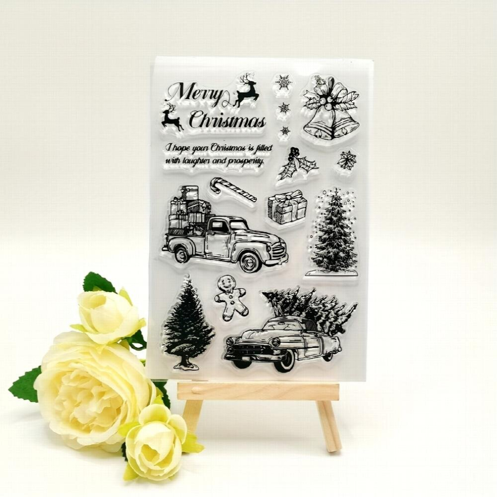 1pc Christmas Word Bell Tree Truck Painting Tool Scrapbook Transparent Silicone Stamp