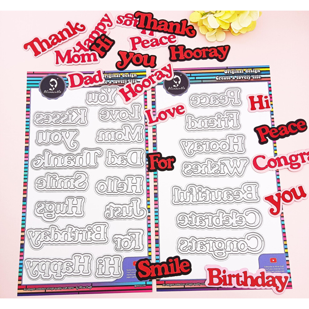 Alinacutle 22PC Word Metal Die Cut Sentiments Diecut Greeting Die Good Wishes Paper Craft Cutting Dies Scrapbooking Cutting DIY