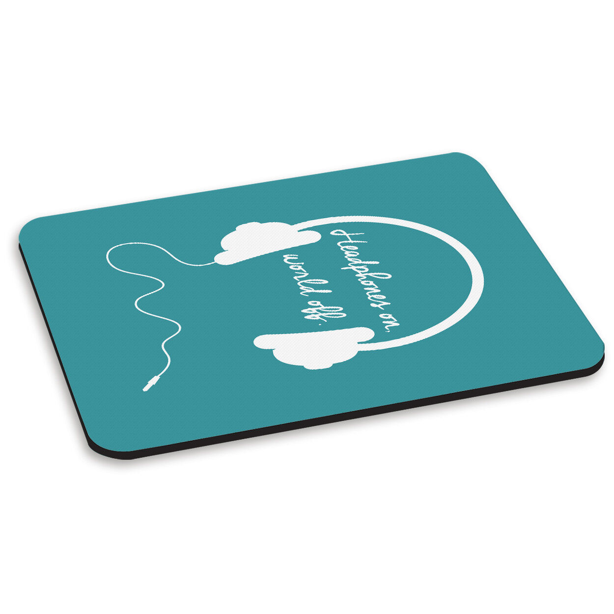 HEADPHONES ON, WORLD OFF TEAL PC COMPUTER MOUSE MAT PAD - Music Rock n Roll