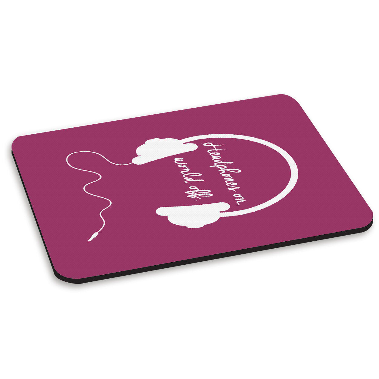 HEADPHONES ON, WORLD OFF PURPLE PC COMPUTER MOUSE MAT PAD - Music Rock n Roll