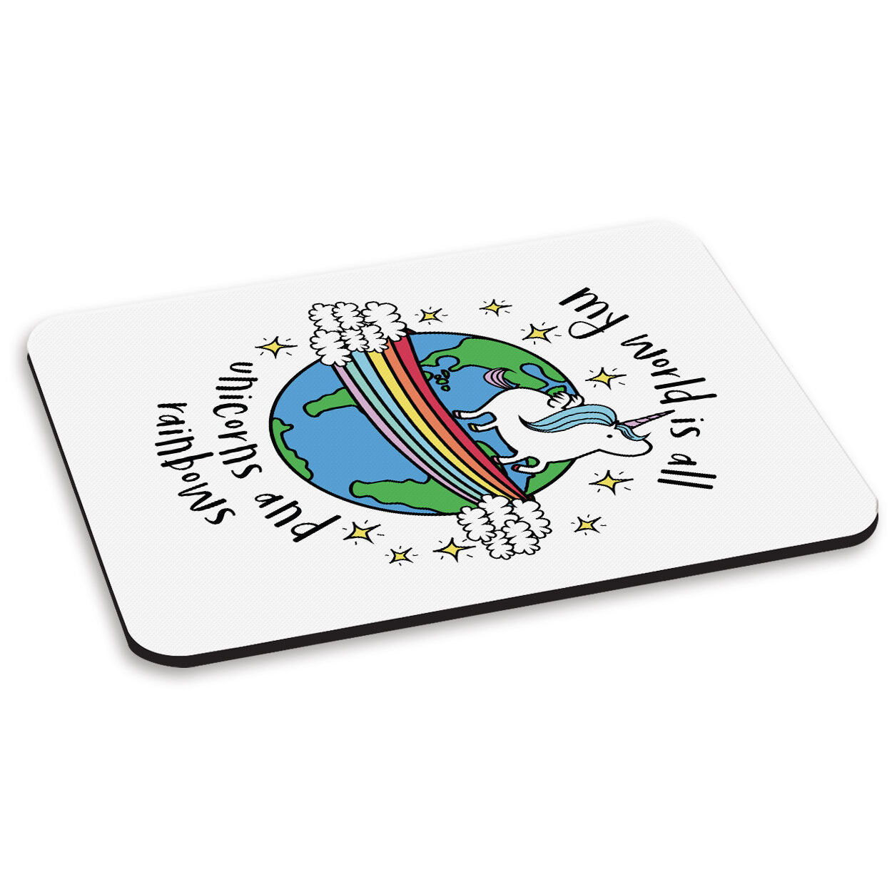 My World Is All Unicorns And Rainbows PC Computer Mouse Mat Pad - Funny