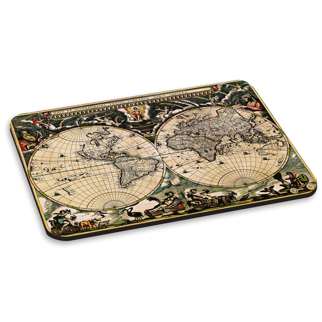 VINTAGE OLD WORLD MAP 4 PC COMPUTER MOUSE MAT PAD - Round Globes Retro Travel