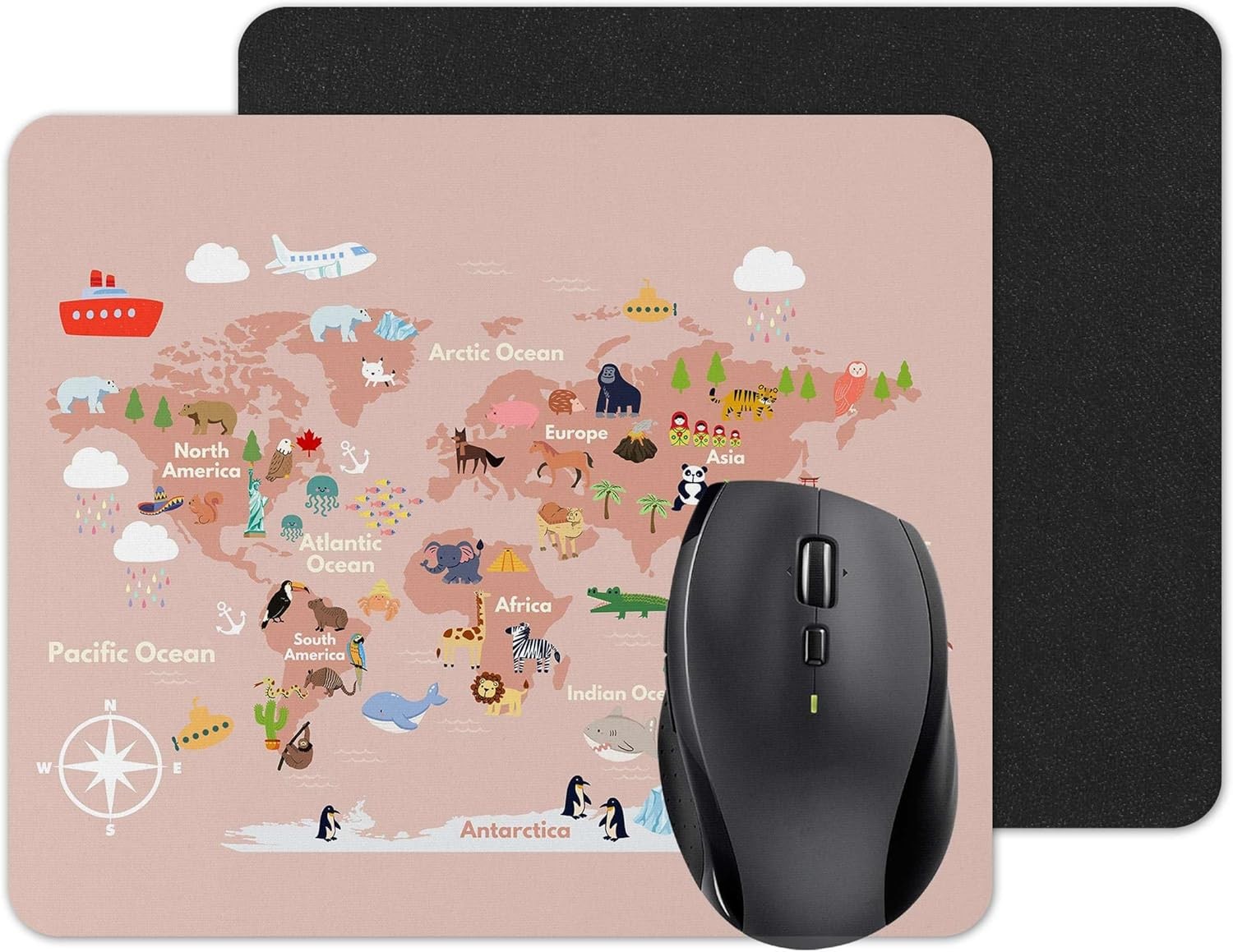 World Map, for kids with animals Mouse mat pad for UK with Holiday Non Slip PC