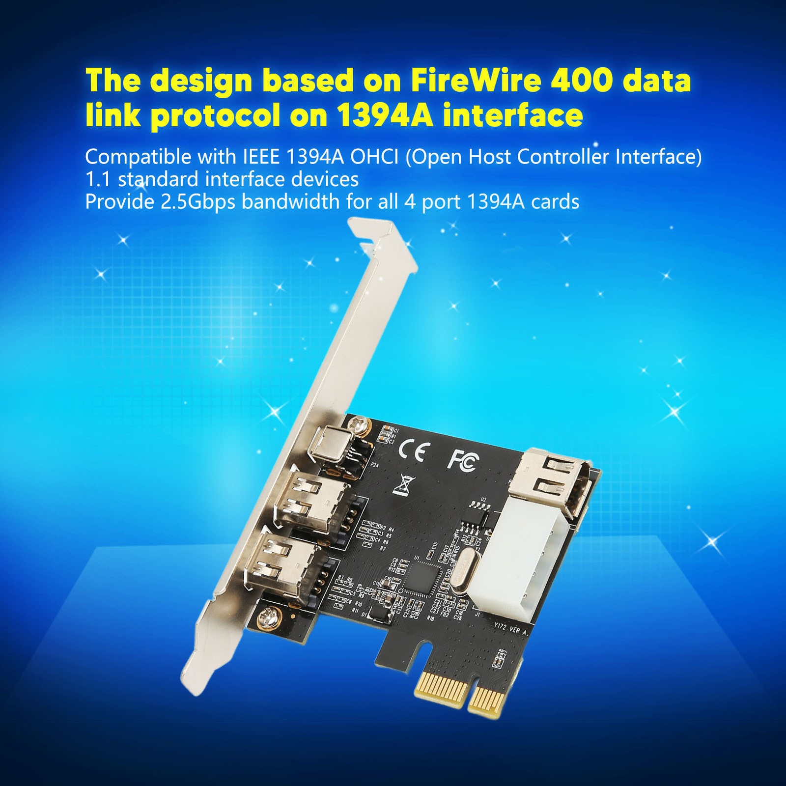 1394 Firewire Card,PCIe 3 Ports 1394A Firewire Expansion Card, PCI Express3386