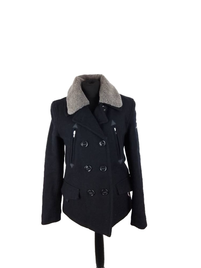 Superdry Merchant Pea Coat Double Breasted Navy Blue Size: M