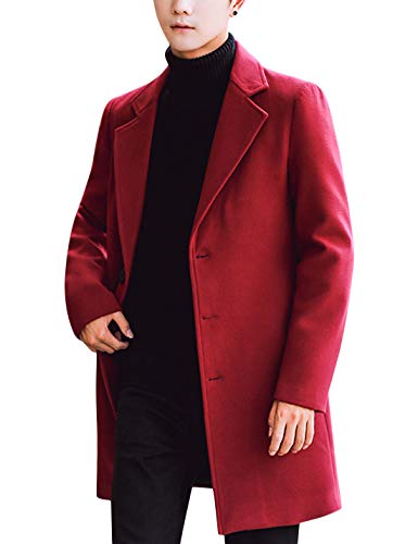 Springrain Men's Wool Blend Pea Coat Notched Collar Single Breasted Overcoat Warm Winter Trench Coat, Red, M
