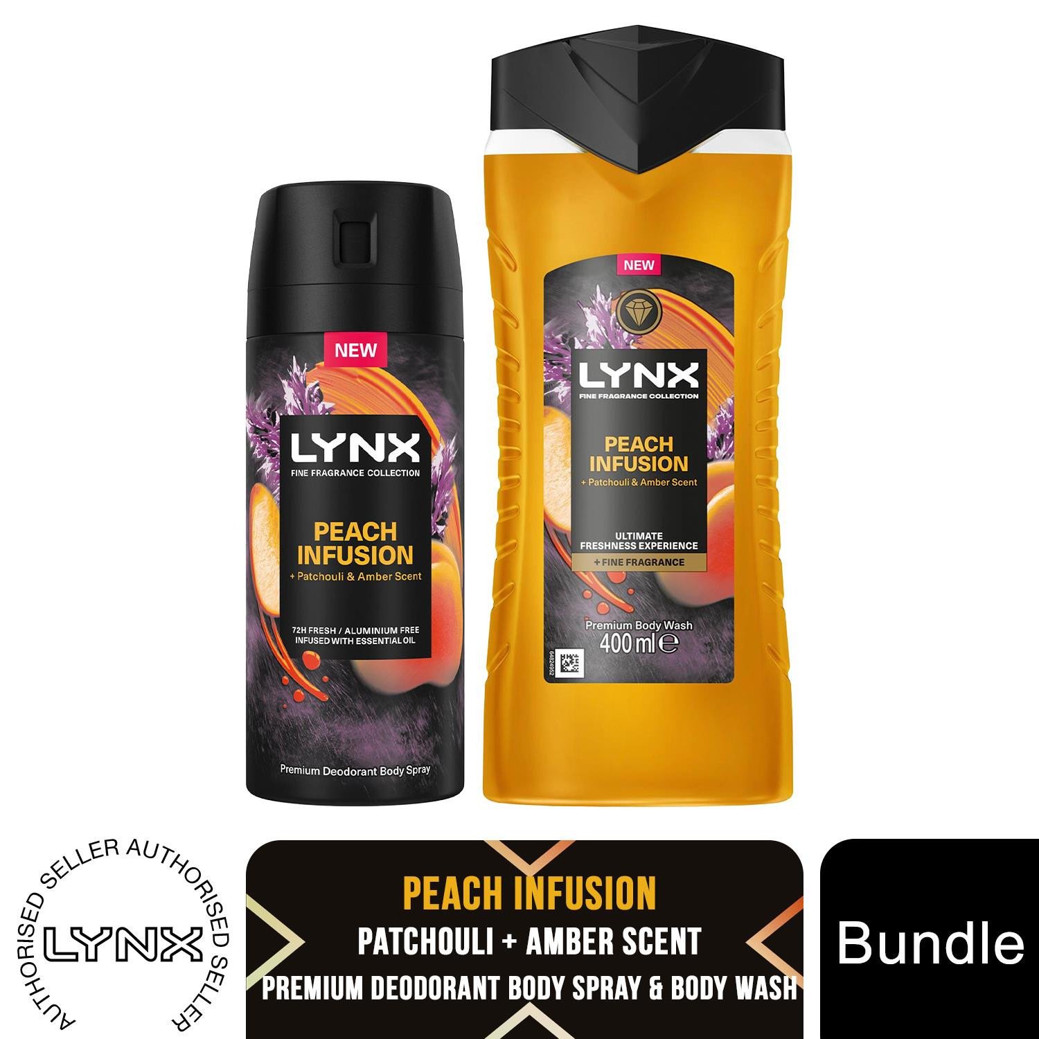 Lynx Fine Fragrance Peach Infusion Bundle Body Spray and Body Wash for Men