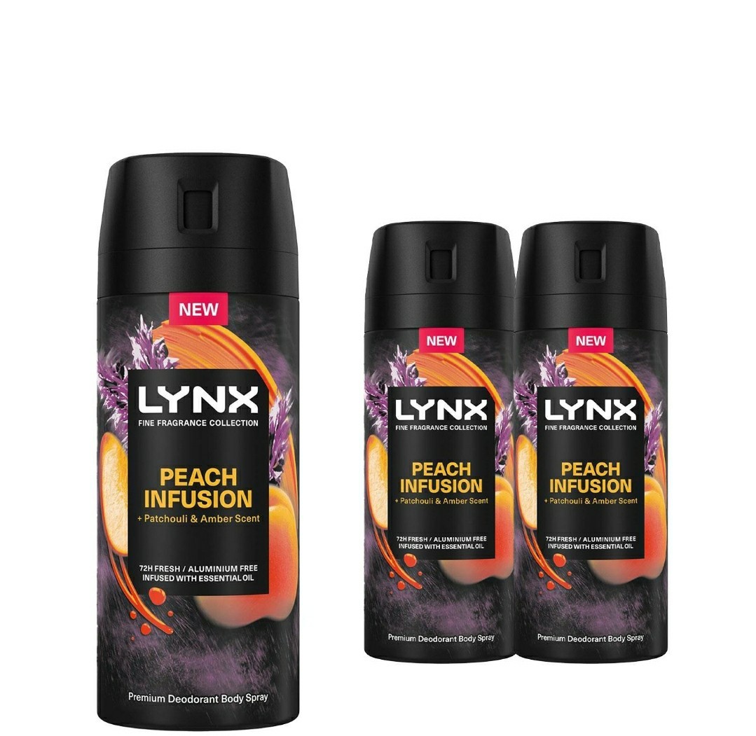 Lynx Body Spray Fine Fragrance Collection Peach Infusion for Men 150ml, 3 Pack