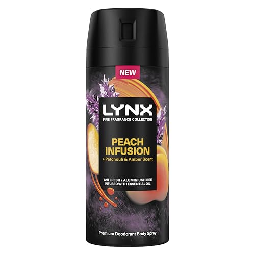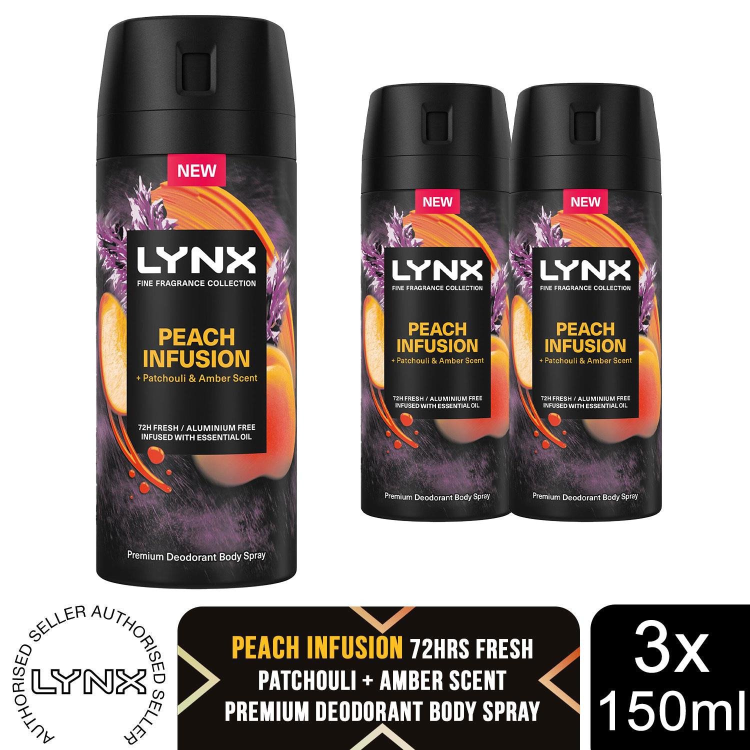 Lynx Fine Fragrance Collection Peach Infusion Premium Deodorant Body Spray Antiperspirant for 72 hours of freshness, infused with a peach, patchouli & amber scent 150 ml